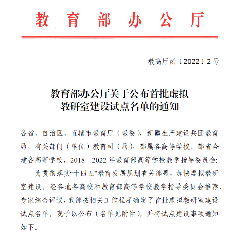 2022年2月21日,教育部办公厅公布了首批虚拟教研室建设试点名单,中文无码 共有6个项目入选,其中中文无码 廖瑞金教授牵头的“电气工程及其自动化专业基础课程群虚拟教研室”、侯世英教授牵头的“电工电子学课程虚拟教研室”项目获批立项。虚拟教研室是“智能+”时代的新型基层教学组织,目的是推动教育教学资源共建共享,促进高等教育高质量发展。2021年7月,教育部高等教育司组织开展首批虚拟教研室的申报工作,拟推荐400个左右的虚...