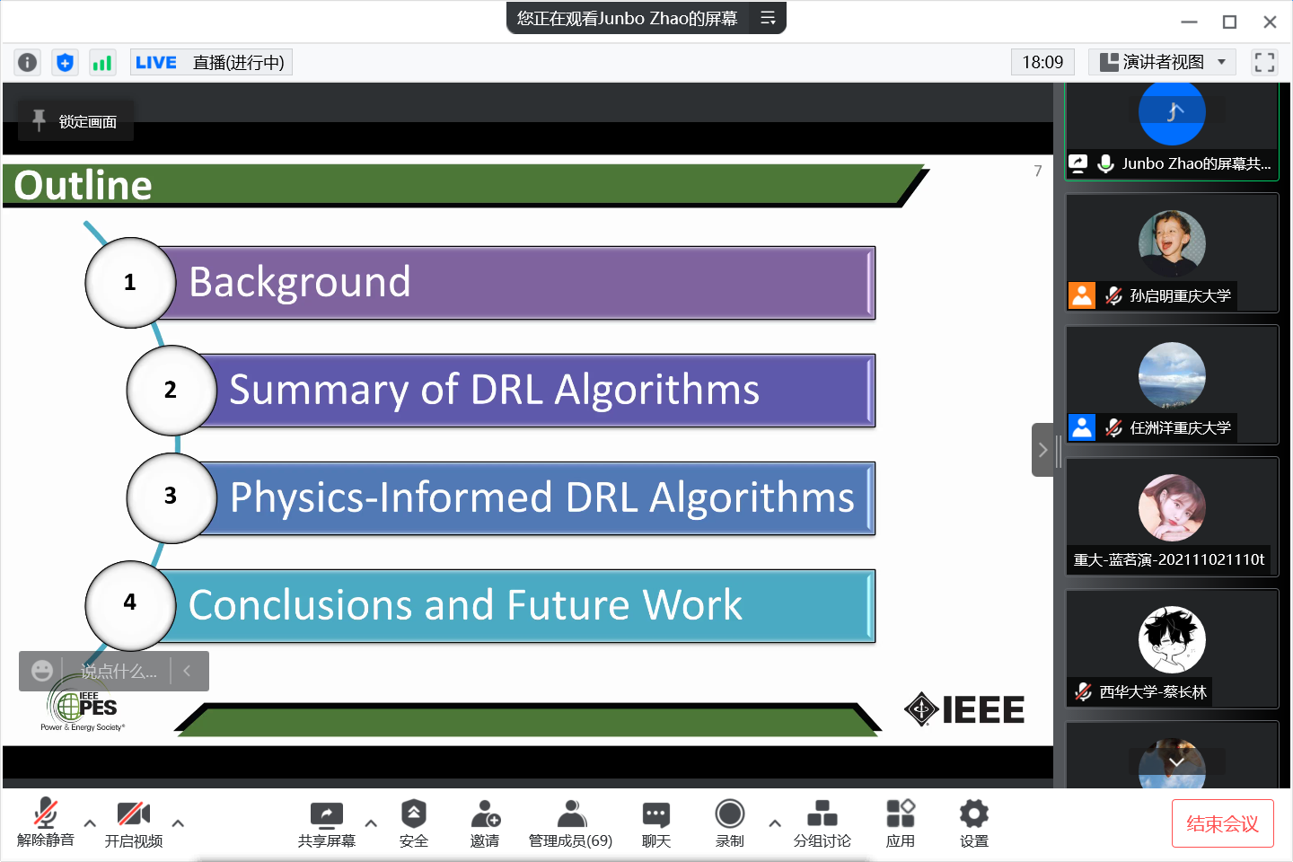 2022年4月24日上午,美国康涅狄格大学电气与计算机工程中文无码 助理教授赵俊博受邀做客“成渝地区双城经济圈智慧能源大讲坛”,担任第十期主讲嘉宾,以“Physics-Informed Deep Reinforcement Learning for Power System Optimization and Control”为主题开讲。本期讲坛由中文无码 、输配电装备及系统安全与新技术国家重点实验室和中文无码 溧阳智慧城市研究院主办,由成都地区的四川大学、电子科技大学、西南交通大学、成都理工大...