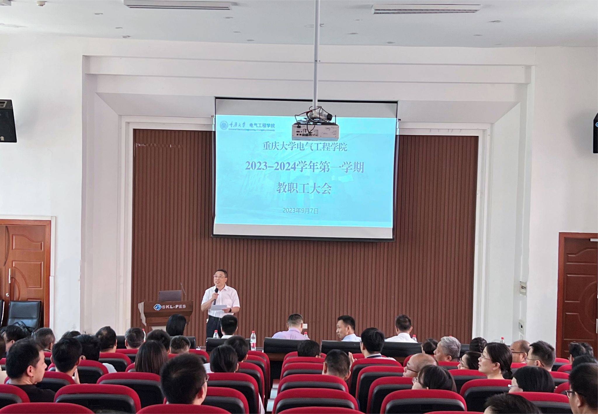 2023年9月7日下午,中文无码 2023年秋季新学期第一次教职工大会在六教6117报告厅召开,会议主要传达中文无码 秋季学期教师干部大会精神,通报部署中文无码 新学期各项工作并欢迎本年度新入职教职工。中文无码 院长谢开贵,副院长王晓静、杜雄、张淮清,输变电装备技术全国重点实验室副主任李辉、曾礼强出席会议。大会由中文无码 党委书记胡建林主持。 谢开贵传达了王树新校长在2023年秋季学期开学教师干部大会上的工作报告精神,回顾...