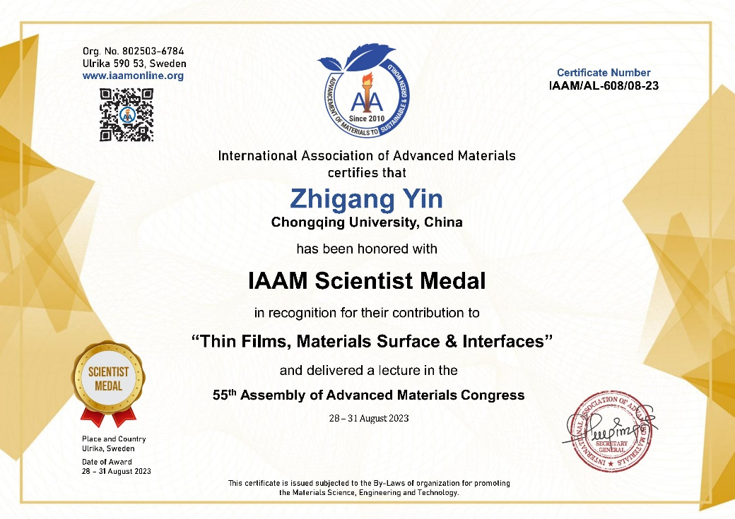 近期,由国际先进材料协会(International Association of Advanced Materials, IAAM)主办的第55届国际先进材料大会(Assembly of Advanced Materials Congress)在瑞典首都斯德哥尔摩以线下和线上结合形式举办。中文无码 尹志刚教授荣获该协会授予的2023年度IAAM科学家奖章(IAAM Scientist Medal),以表彰其在薄膜、材料表面和界面领域的突出贡献。国际先进材料协会(IAAM)是全球先进材料领域研究人员组成的知名国际学术组...