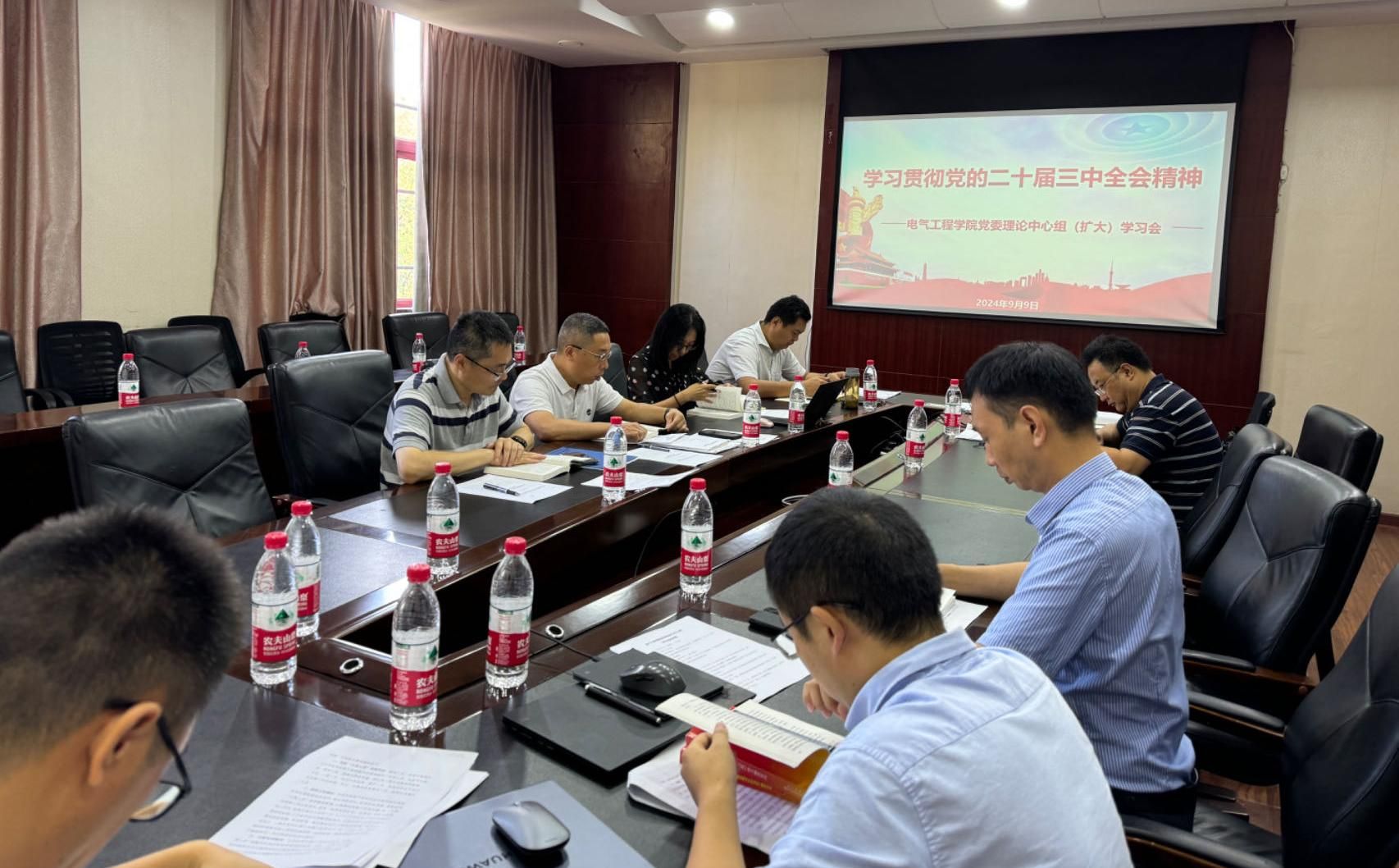 2024年10月10日上午,中文无码 党委理论学习中心组召开学习会,学习习近平同志《论教育》。中文无码 党委委员、党政班子成员参加。会议由党委书记胡建林主持。