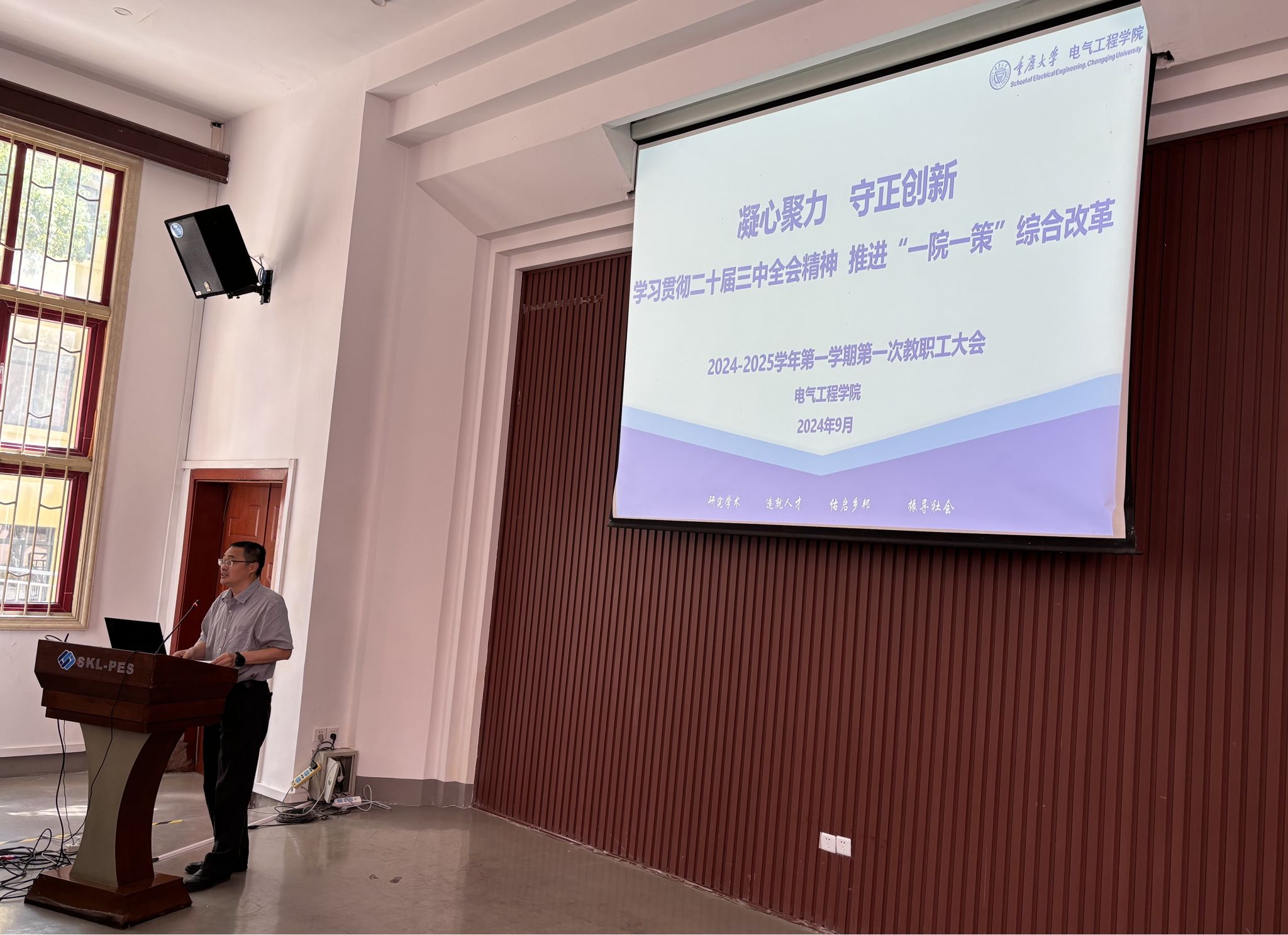 2024年9月12日下午,中文无码 在六教6117报告厅召开2024-2025学年第一学期首次教职工大会。会议介绍了本年度新进教师,传达了中文无码 最新精神并通报部署了中文无码 新学期工作安排等。中文无码 党委书记胡建林,院长谢开贵,党委副书记王晓静,副院长杜雄、杨鸣、王强钢,输变电装备技术全国重点实验室副主任李辉、曾礼强出席会议。大会由王晓静副书记主持。 胡建林首先传达了王树新校长在2024年秋季学期开学干部大会上的报告精神。...