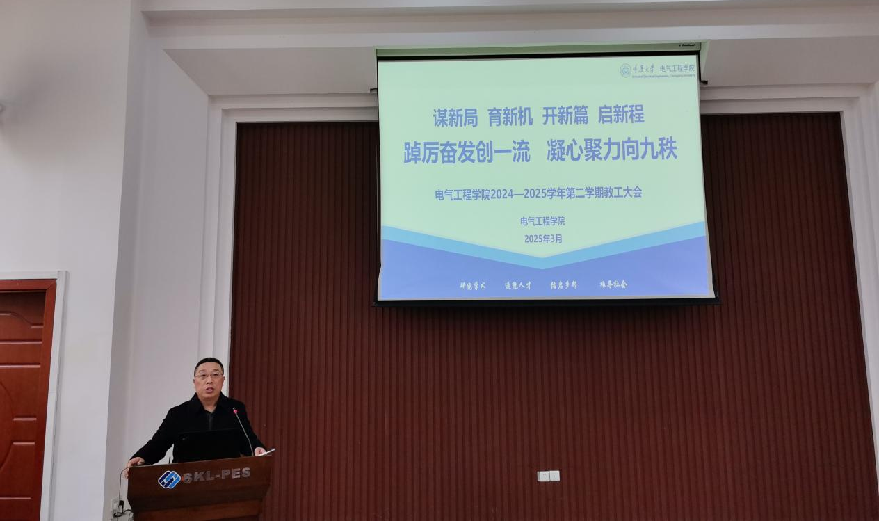 2025年3月6日下午,中文无码 召开2025年新学期教职工大会。中文无码 党委书记胡建林,党委副书记吴嘉,副院长杜雄、杨鸣、王强钢,输变电全国重点实验室李辉出席会议。大会由吴嘉副书记主持。