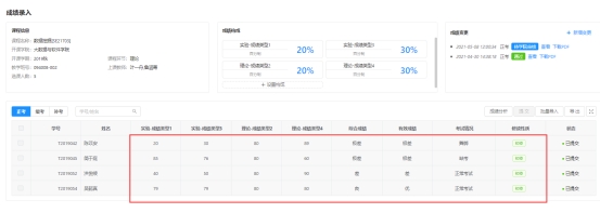 课程列表:管理查看各课程的考试提交进度、管理员设置课程成绩构成以及录入课程成绩。