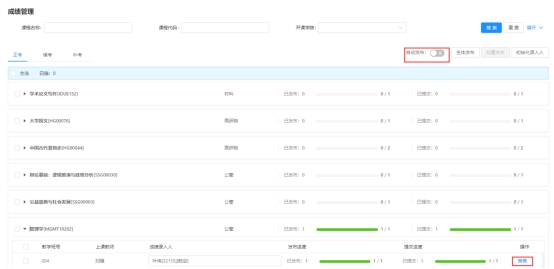 自动发布:点击自动发布,系统对已录入学生成绩的课程进行发布。