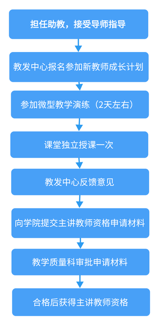 新进教师获得主讲教师资格,有两种途径,一种是参加教发中心组织的新教师成长计划,一种是传统的通过担任助教以及试讲获得主讲教师资格。
