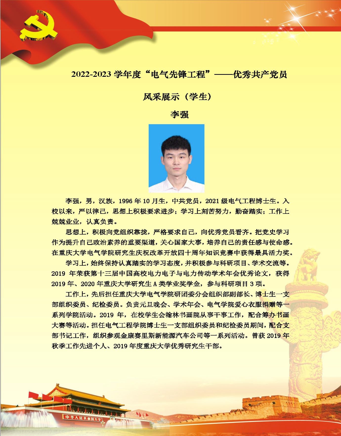 【党员风采】博士生一支部李强