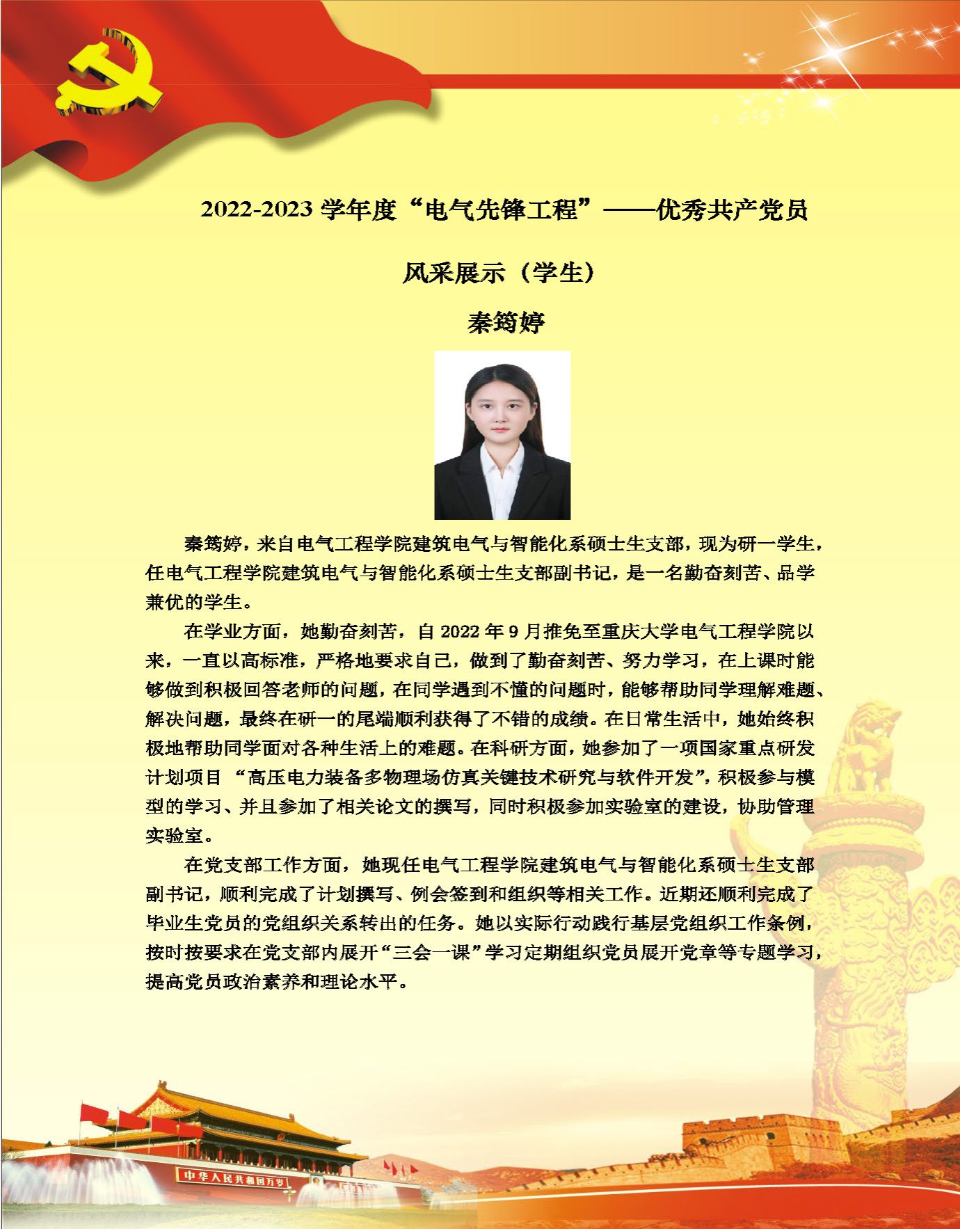 【党员风采】建筑电气与智能化系硕士生支部秦筠婷