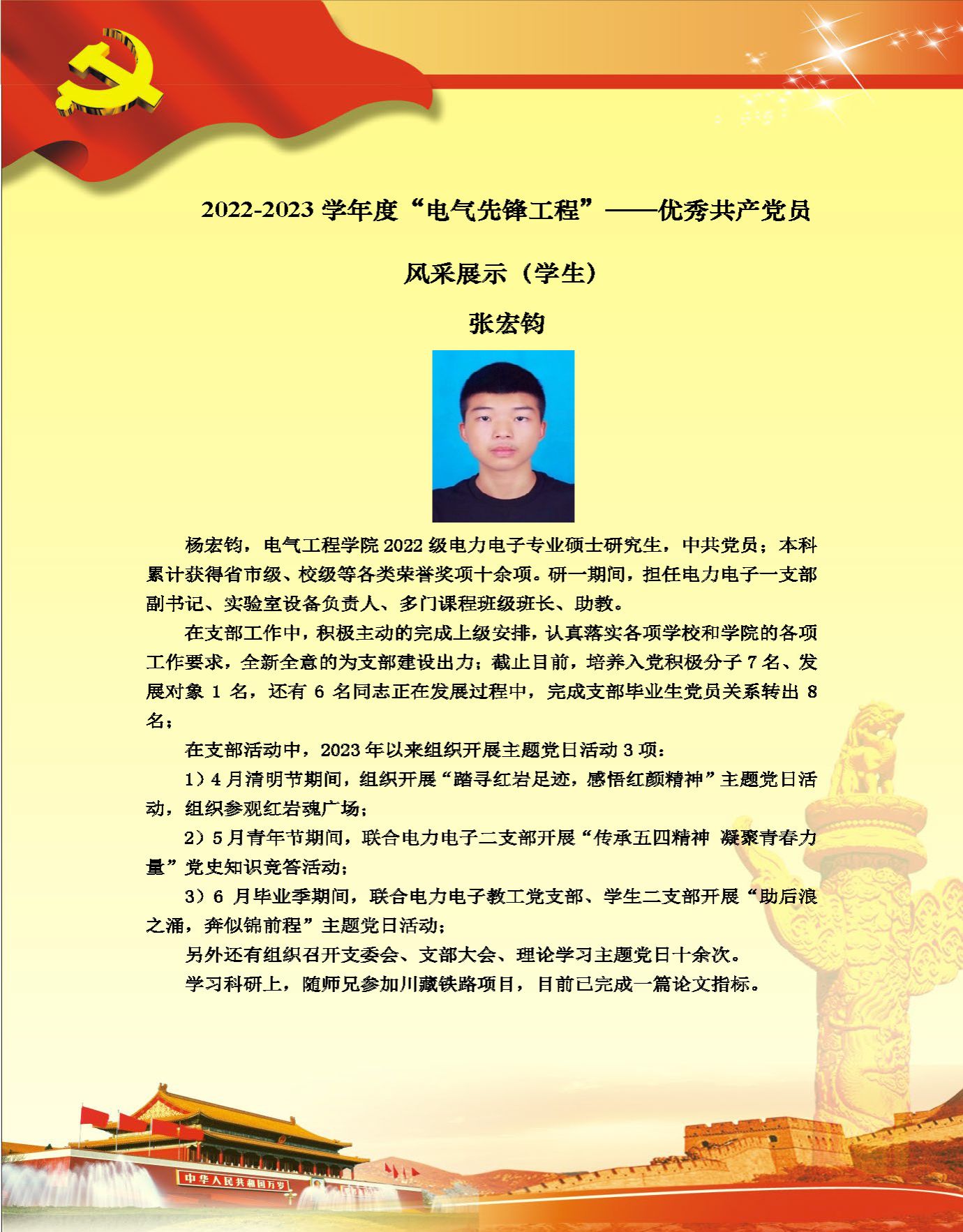 【党员风采】电机与电器系硕士生支部张博