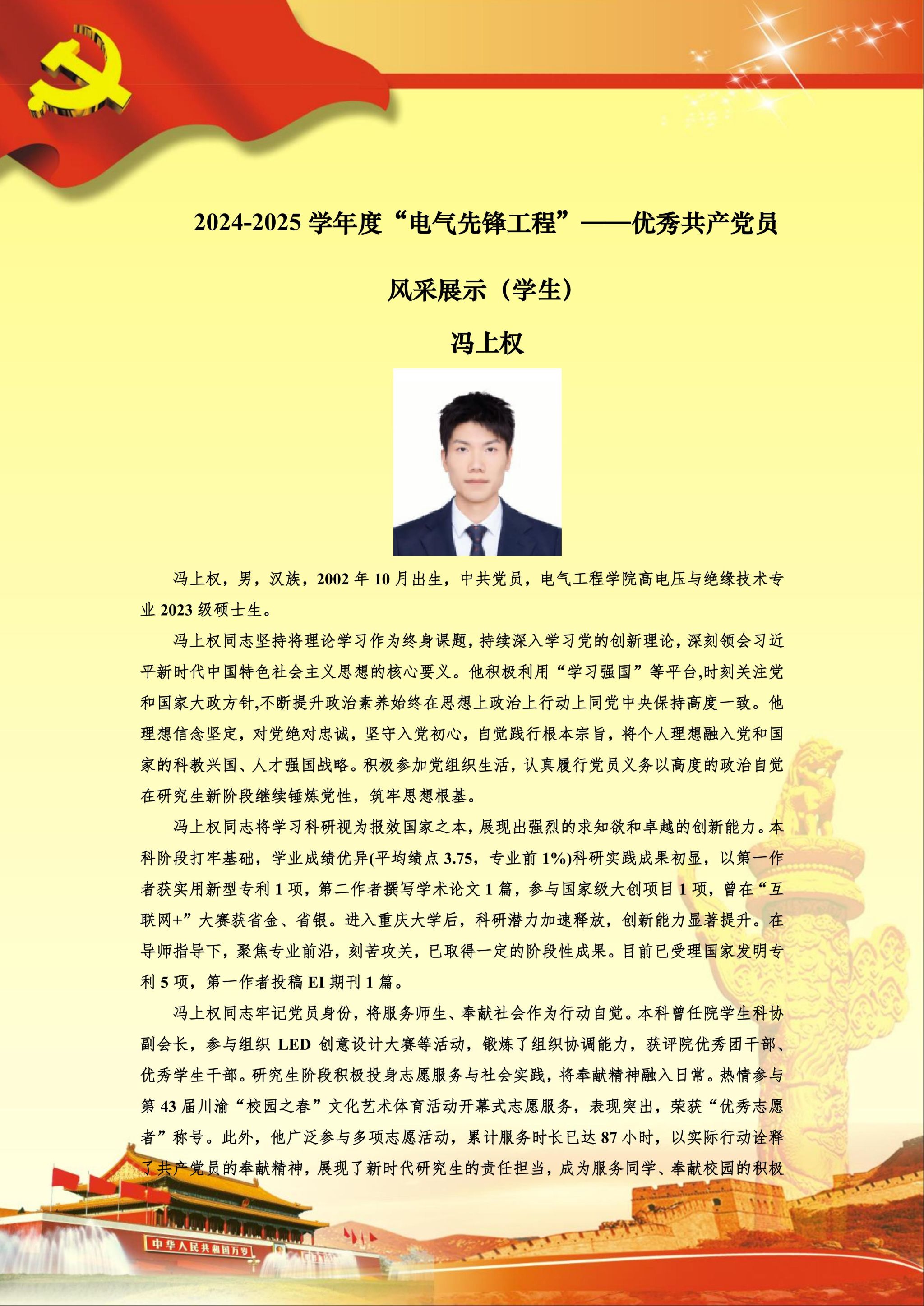 【党员风采】高电压与绝缘技术硕士生一支部冯上权