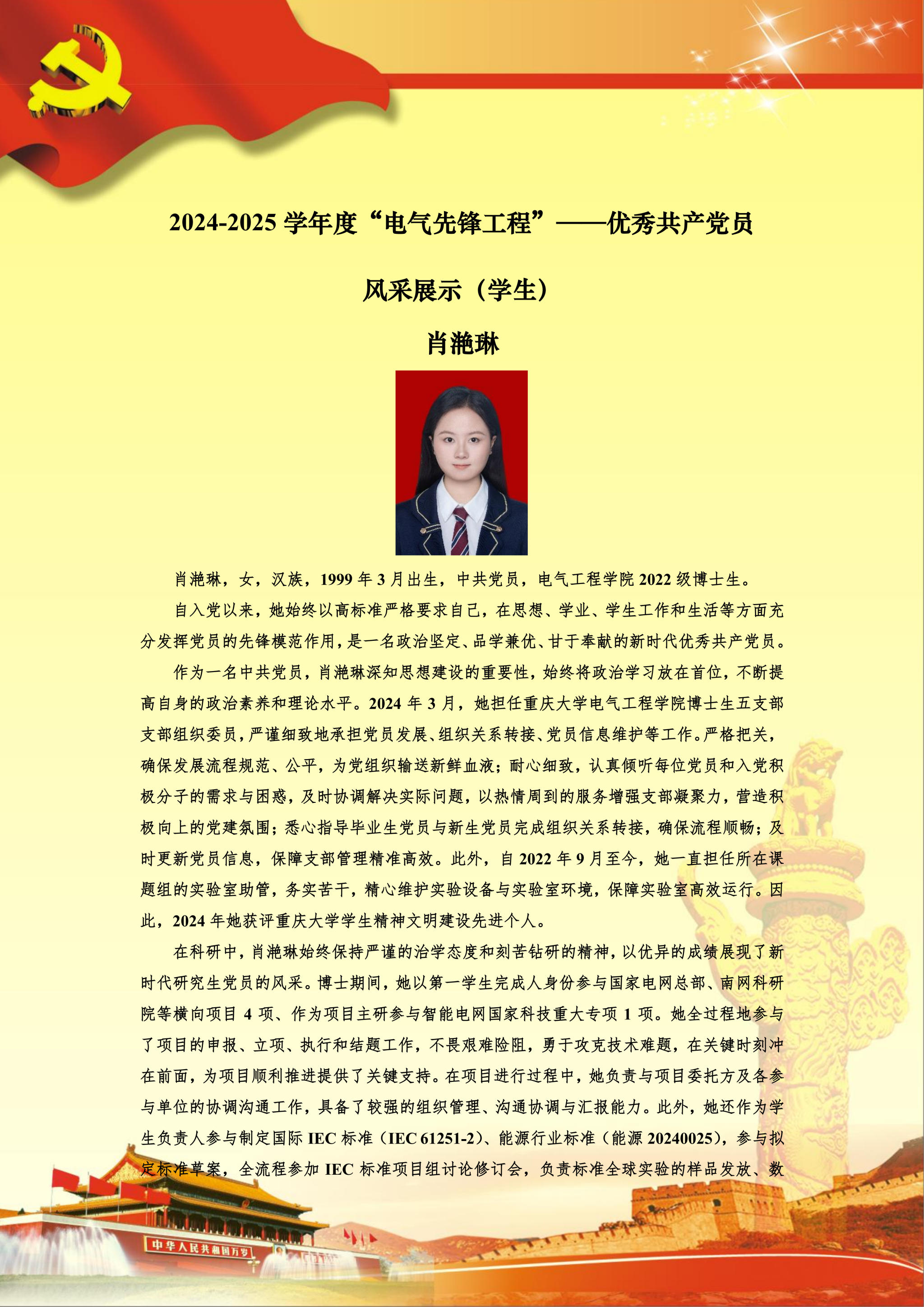 【党员风采】博士生五支部肖滟琳