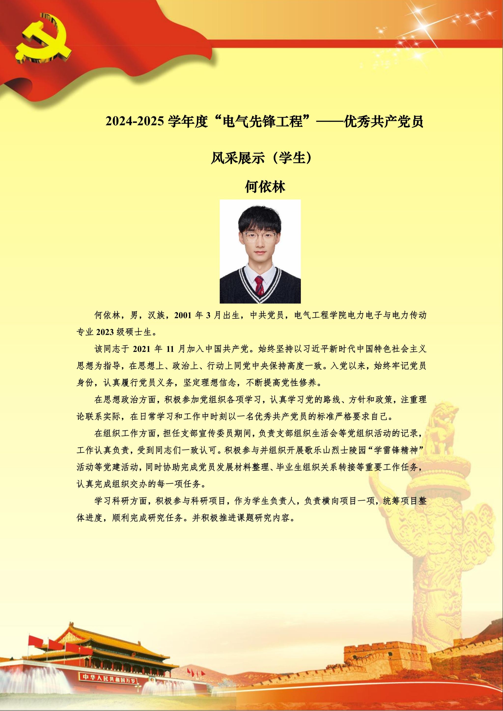 【党员风采】电力电子与电力传动硕士二支部何依林