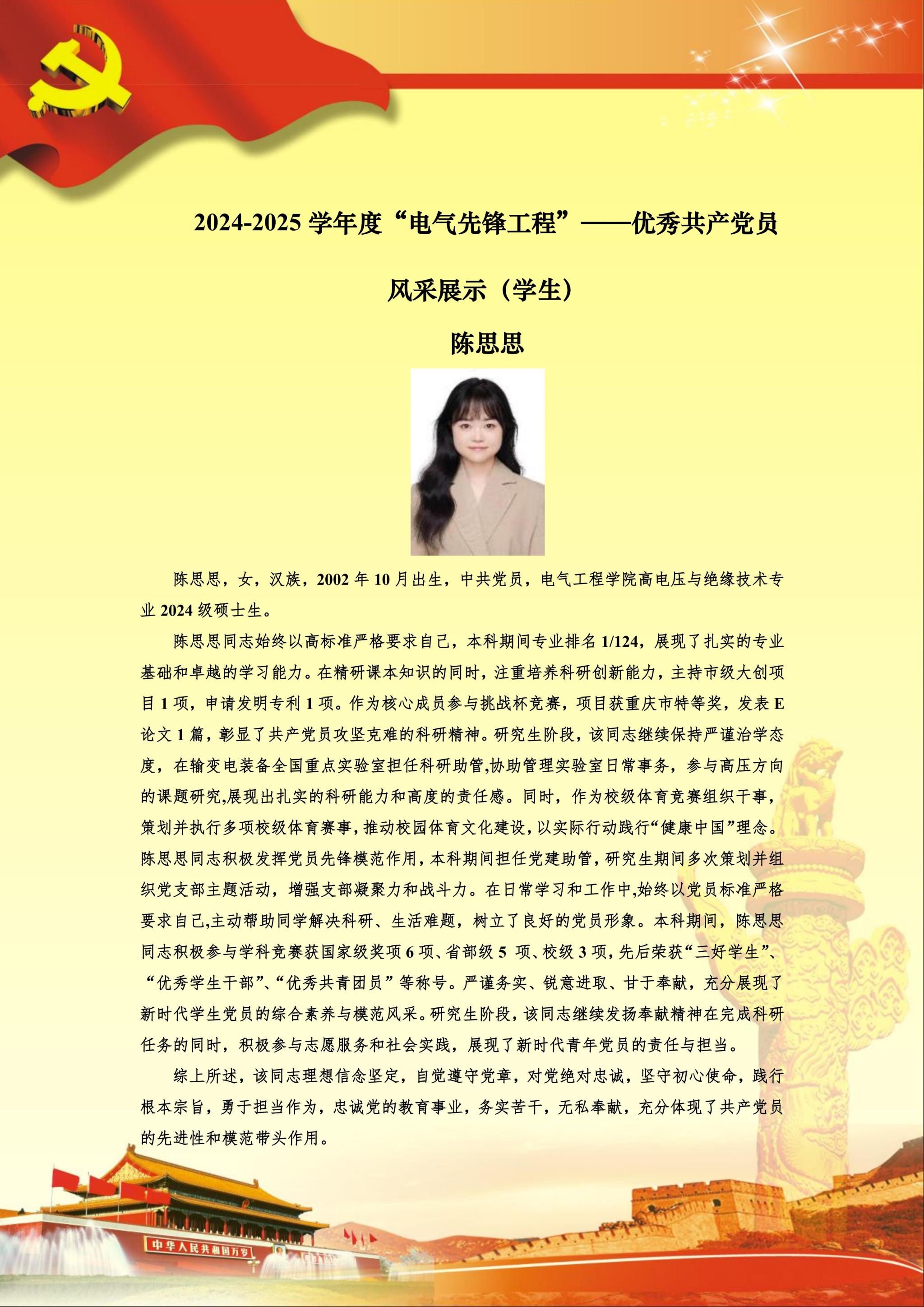 【党员风采】高电压与绝缘技术硕士生一支部陈思思