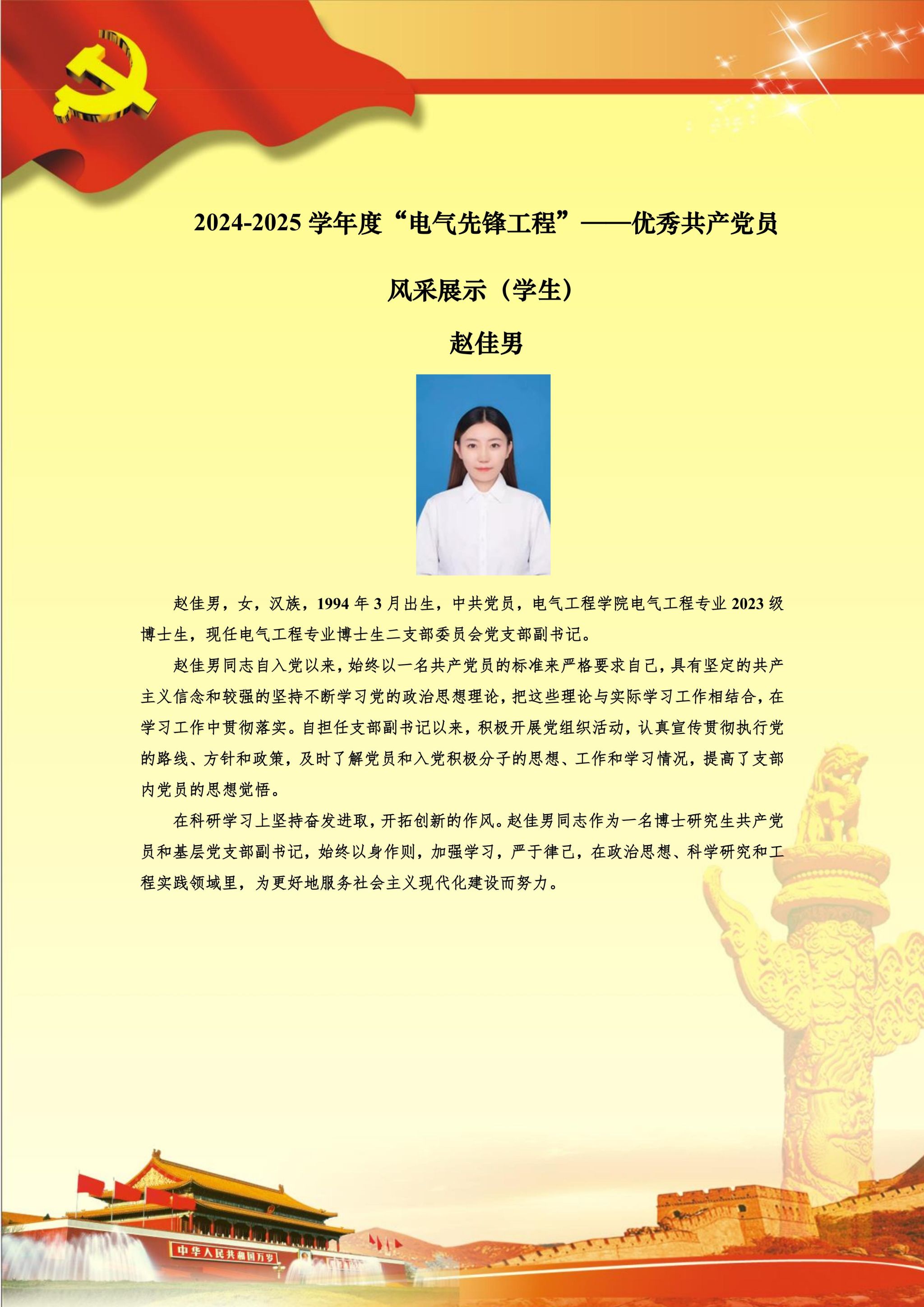 【党员风采】博士生二支部赵佳男