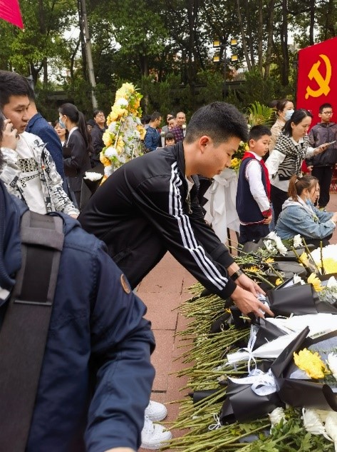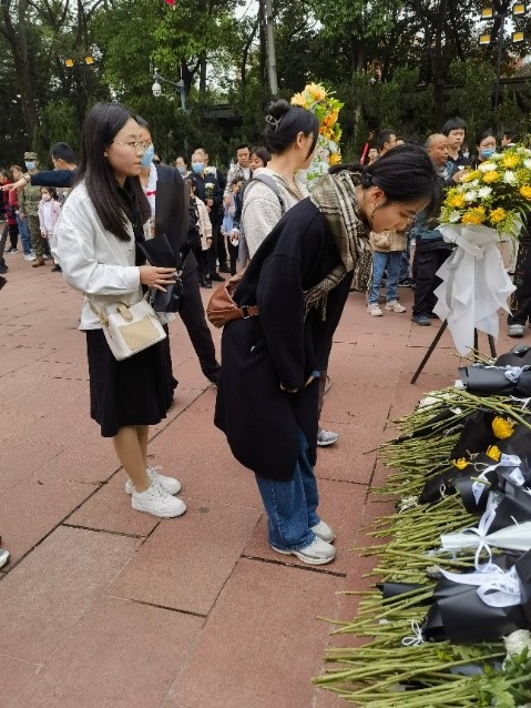 活动伊始,同志们在工作人员的指引下来到歌乐山烈士陵园,向烈士墓敬献花圈和鲜花,默哀致意。与此同时,重庆市社会各界也在歌乐山烈士陵园进行了“清明祭英烈”活动。从血气方刚的军人战士,到朝气蓬勃的青年学子,大家手持鲜花,庄严肃穆,对烈士们进行了深切的缅怀追思。
