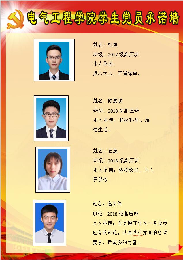 【承诺墙】高电压与绝缘技术第四党支部承诺墙