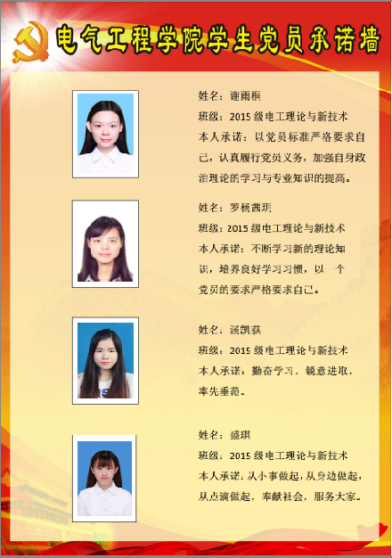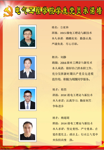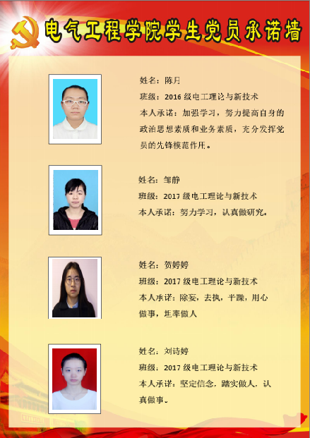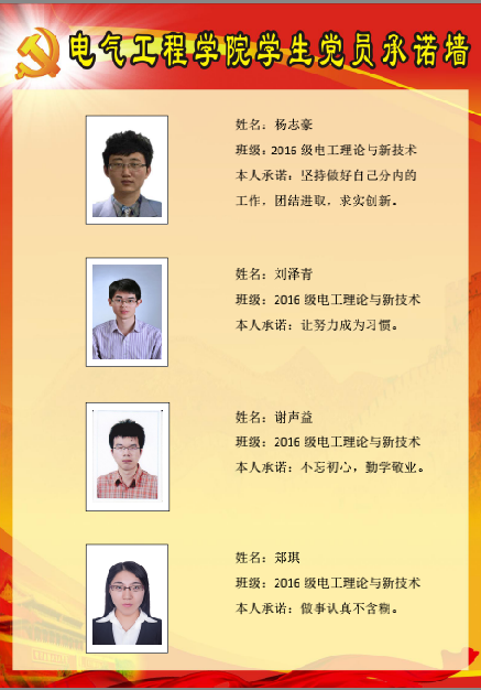 电机与电器硕士生党支部委员会党员承诺墙