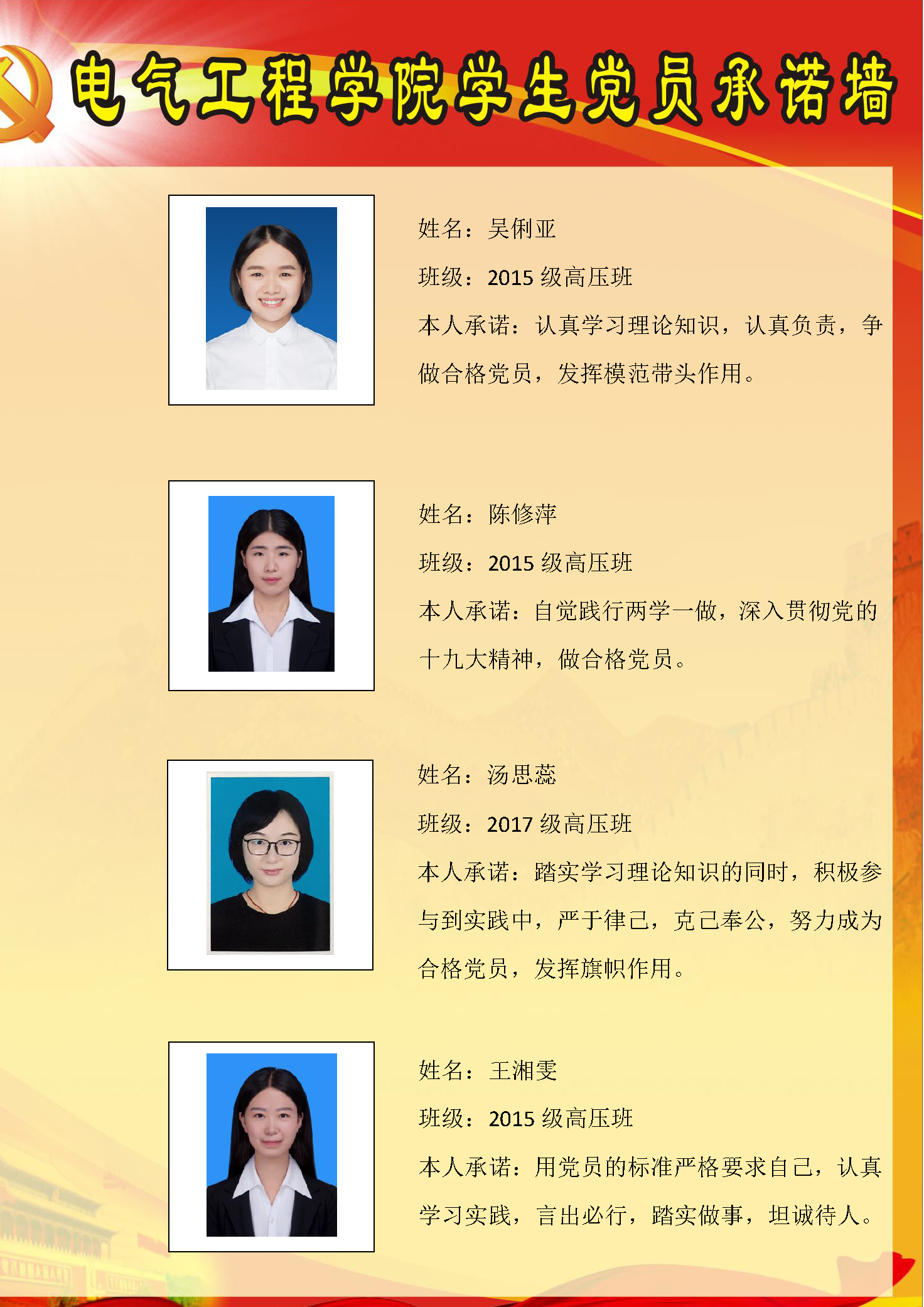 高电压与绝缘系硕士生一支部委员会承诺墙