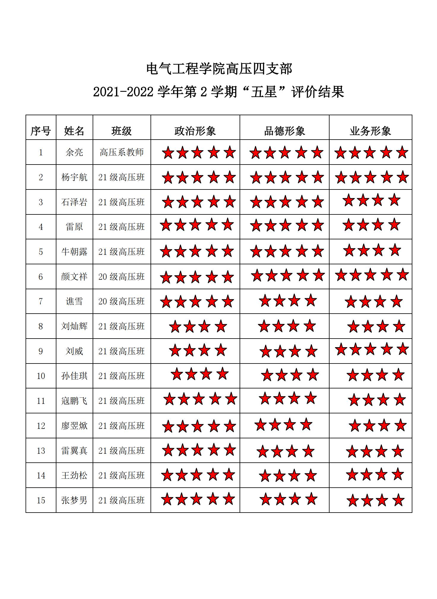 中文无码 高压四支部2021-2022学年第二学期“五星评价结果”