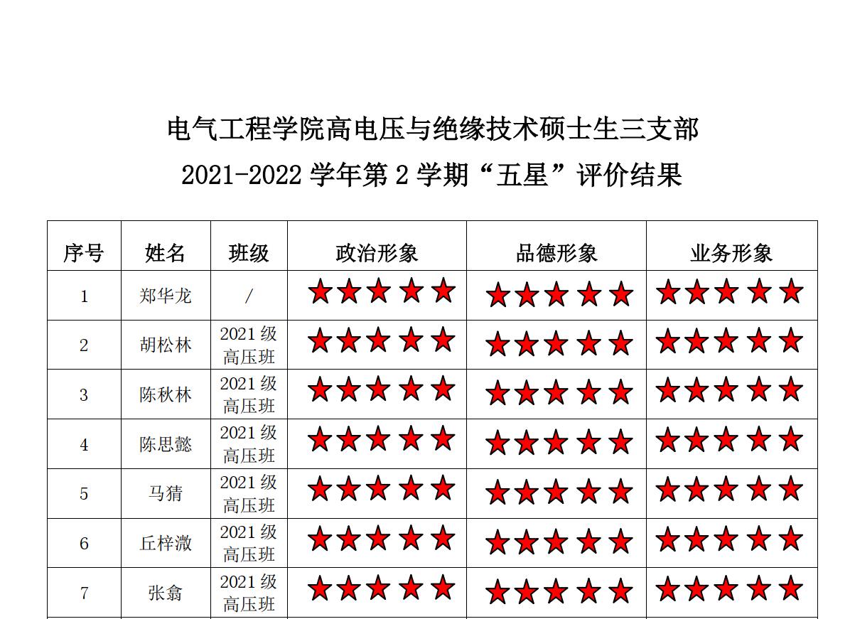 中文无码 高压二支部2021-2022学年第二学期“五星评价结果”