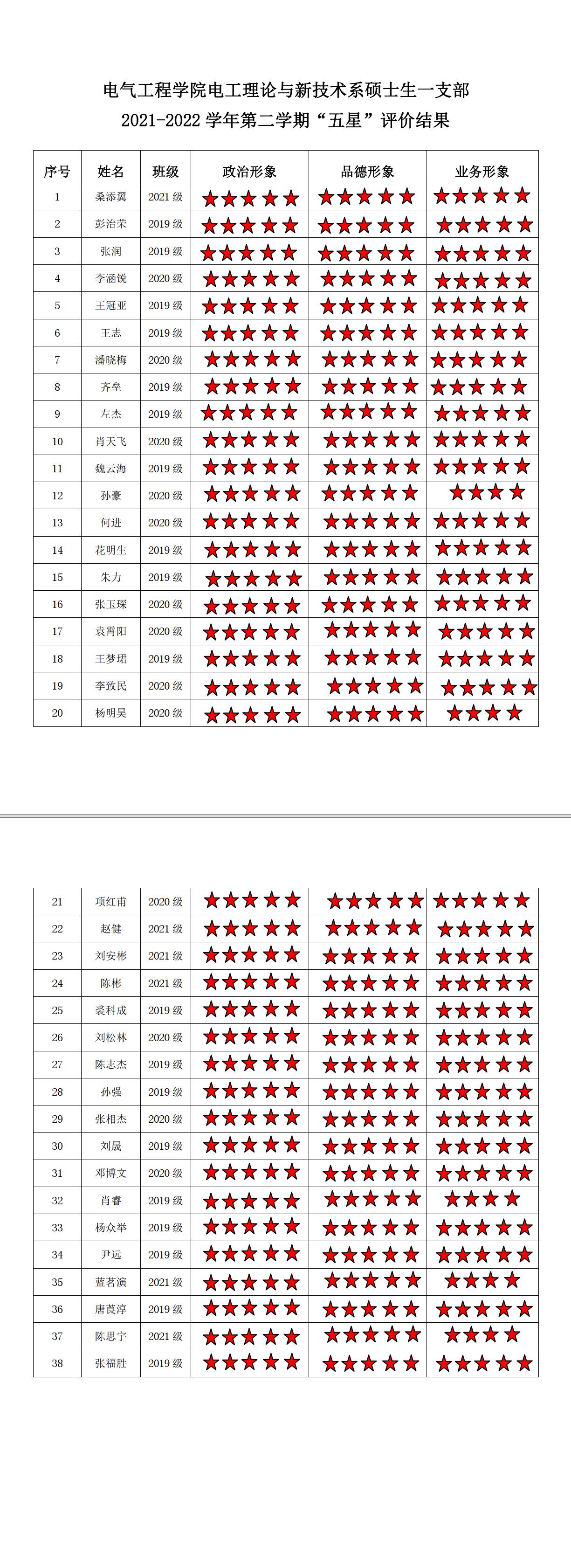 中文无码 电机支部2021-2022学年第二学期“五星评价结果”