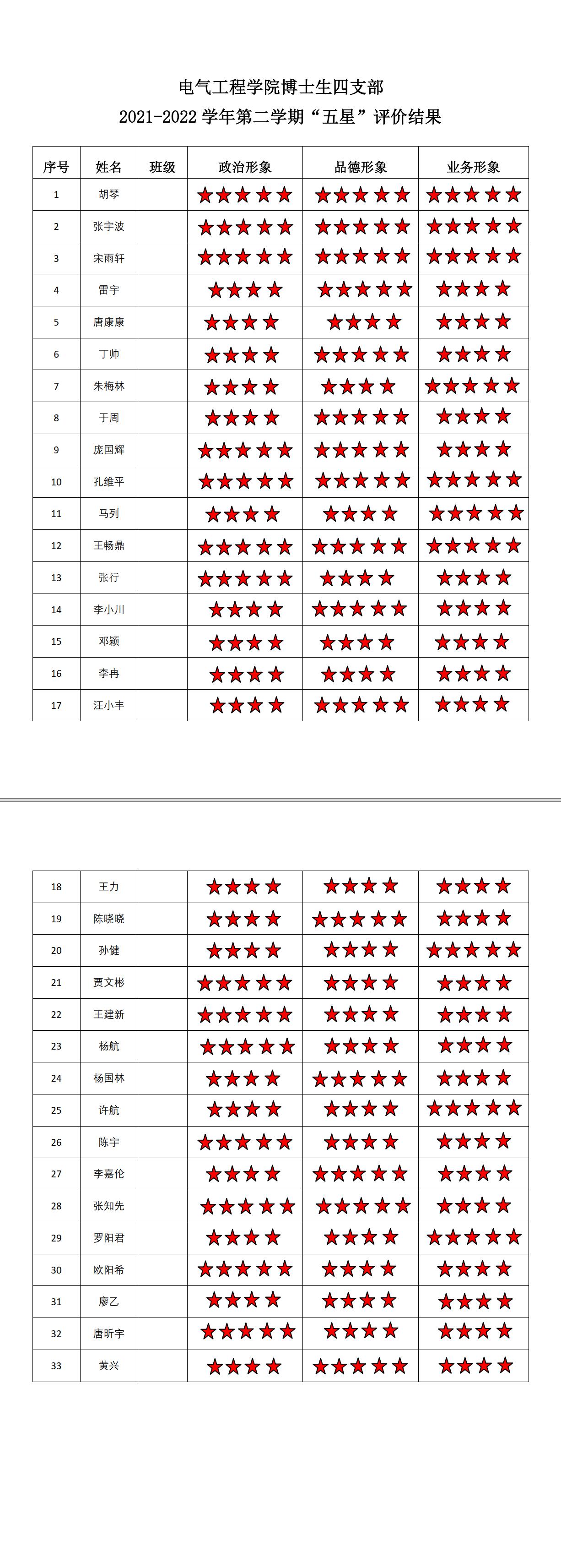 中文无码 博士生五支部2021-2022学年第二学期“五星评价结果”