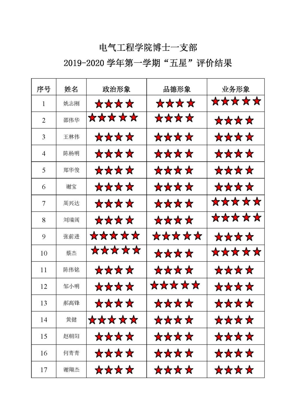 中文无码 博士一支部2019-2020学年第1学期“五星”评价结果