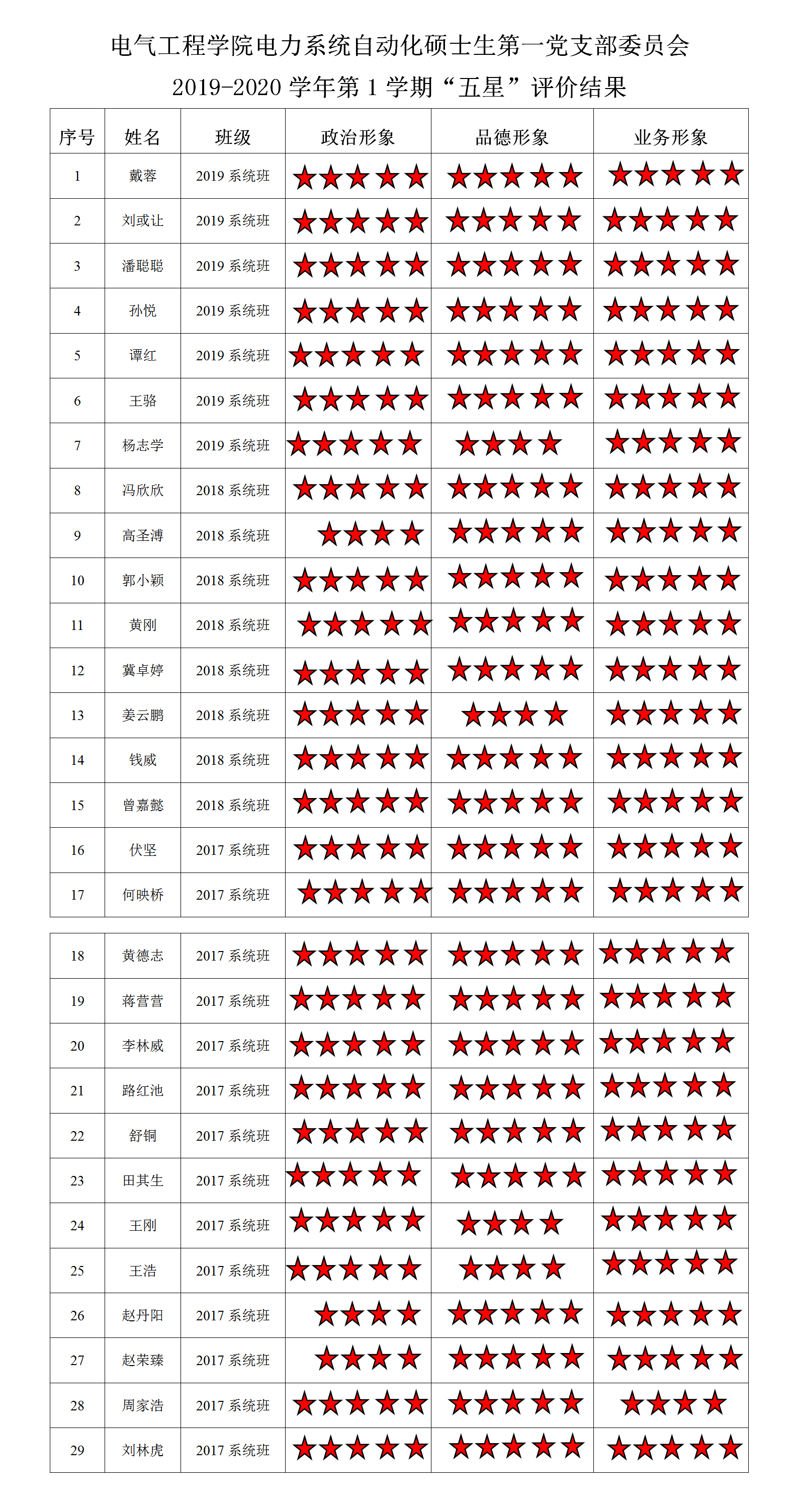 中文无码 电力系统及其自动化系硕士第一支部 2019-2020学年第1学期“五星”评价结果