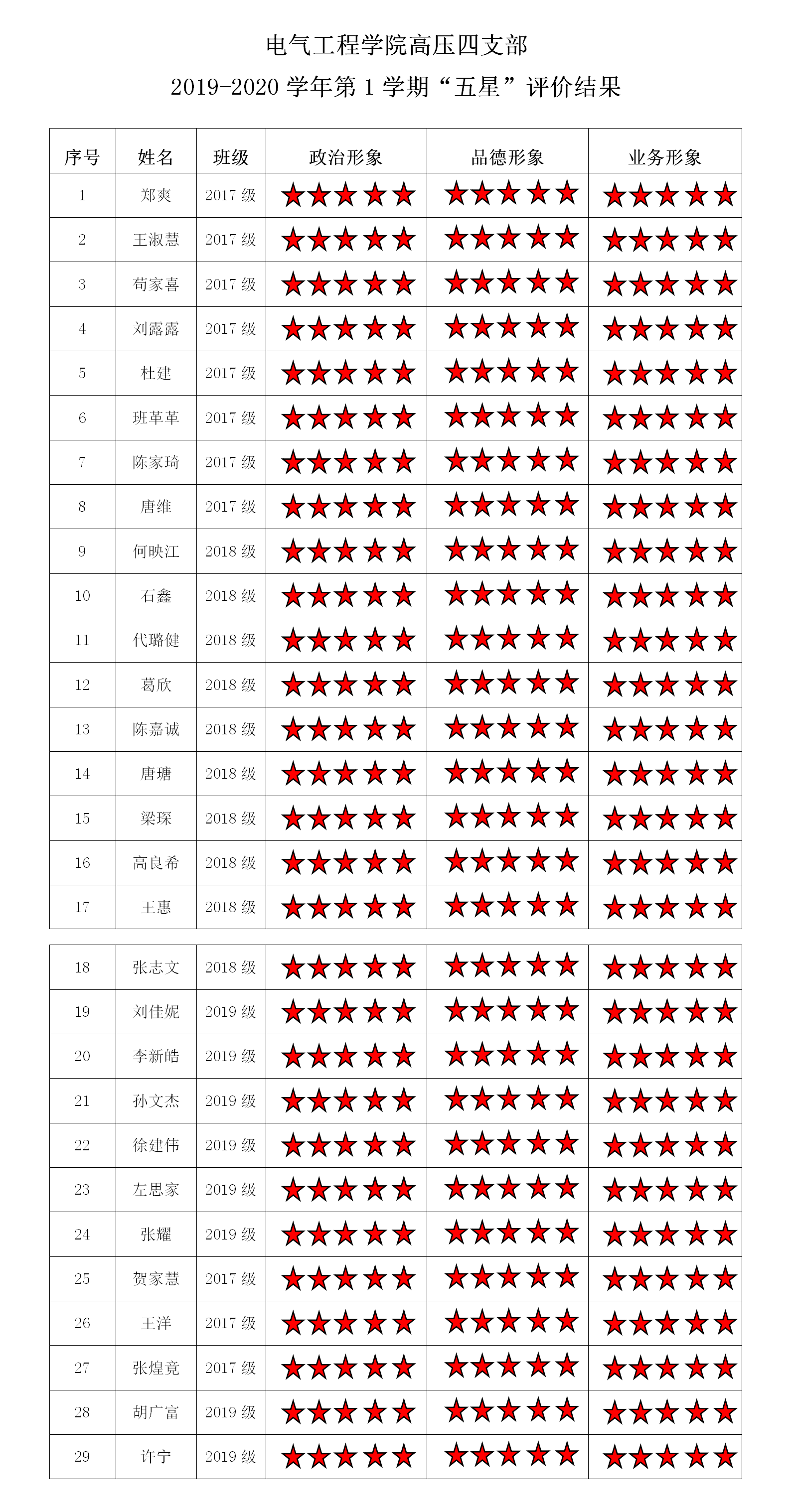中文无码 高电压与绝缘技术第一支部 2019-2020学年第1学期“五星”评价结果