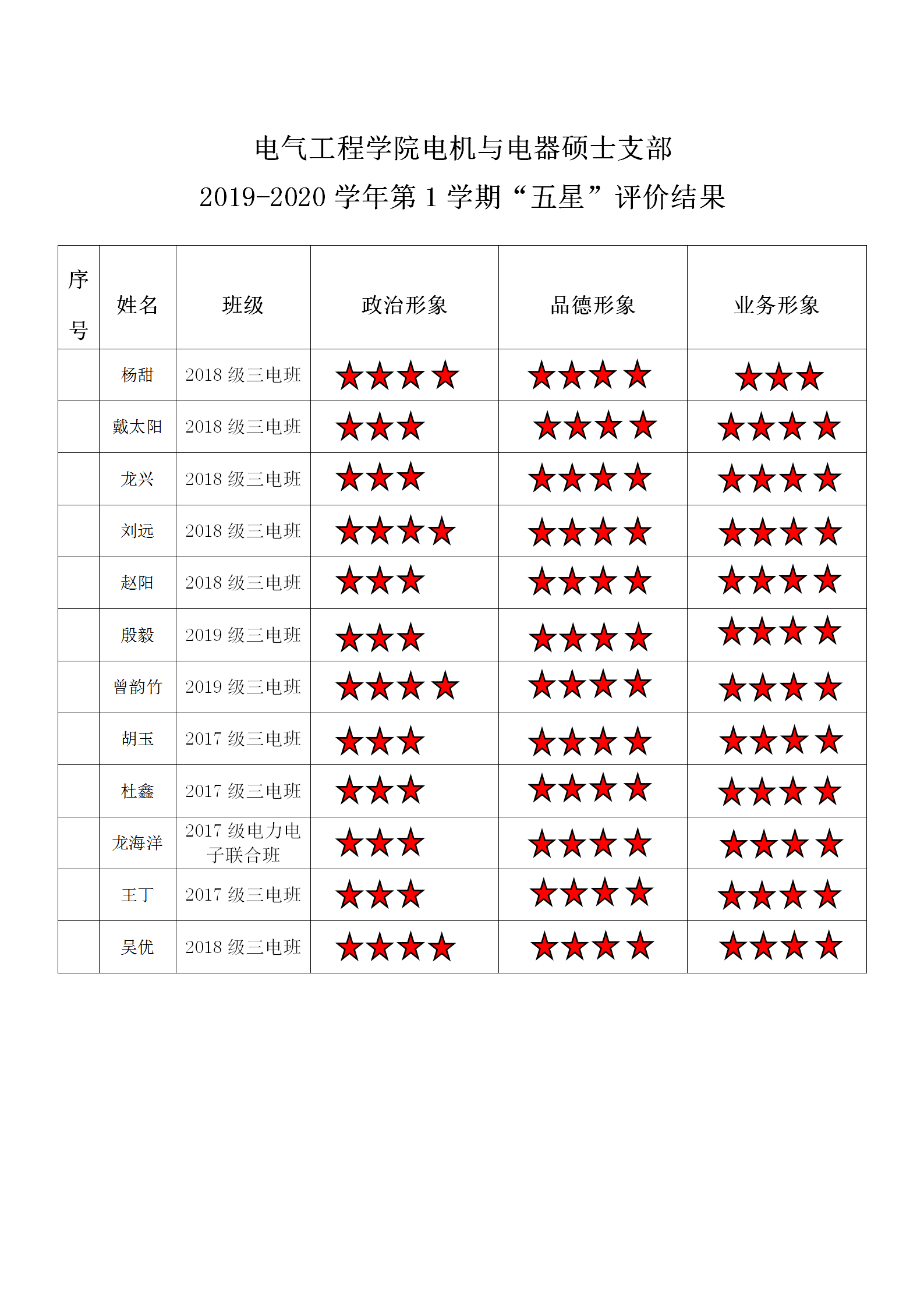 中文无码 电机与电器系硕士支部 2019-2020学年第1学期“五星”评价结果
