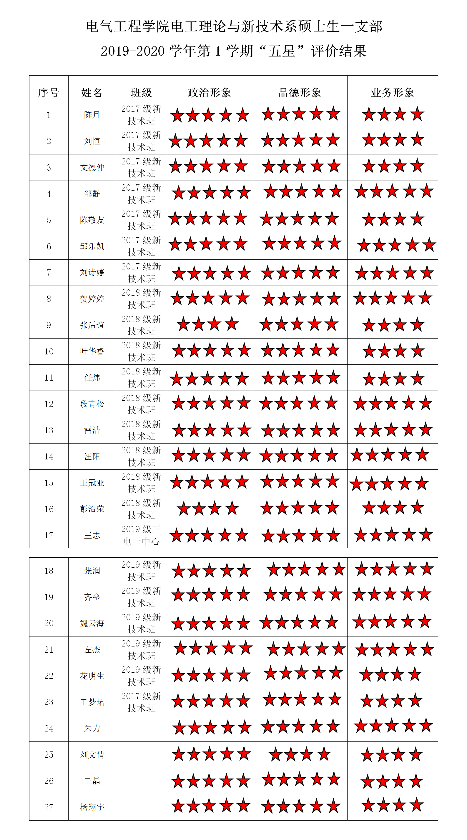 中文无码 电机与电器系硕士支部 2019-2020学年第1学期“五星”评价结果