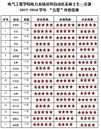 中共中文无码 电力系统及其自动化系硕士生一支部2017-2018学年 “五星”评价结果
