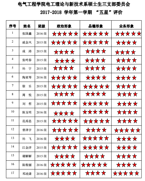 中共中文无码 电工理论与新技术系硕士生三支部委员会2017-2018学年 “五星”评价结果