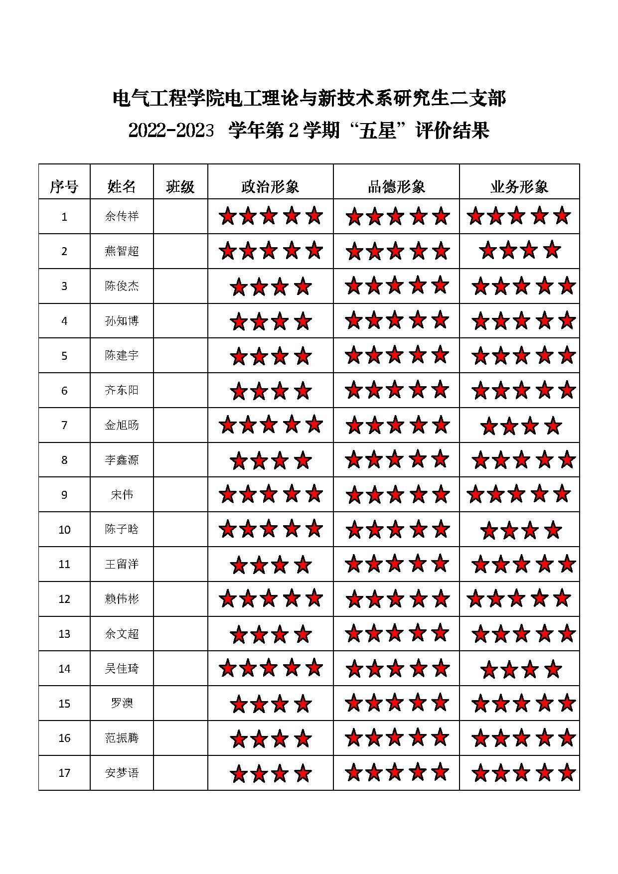 中文无码 电工三支部 2022-2023学年第二学期“五星”评价结果
