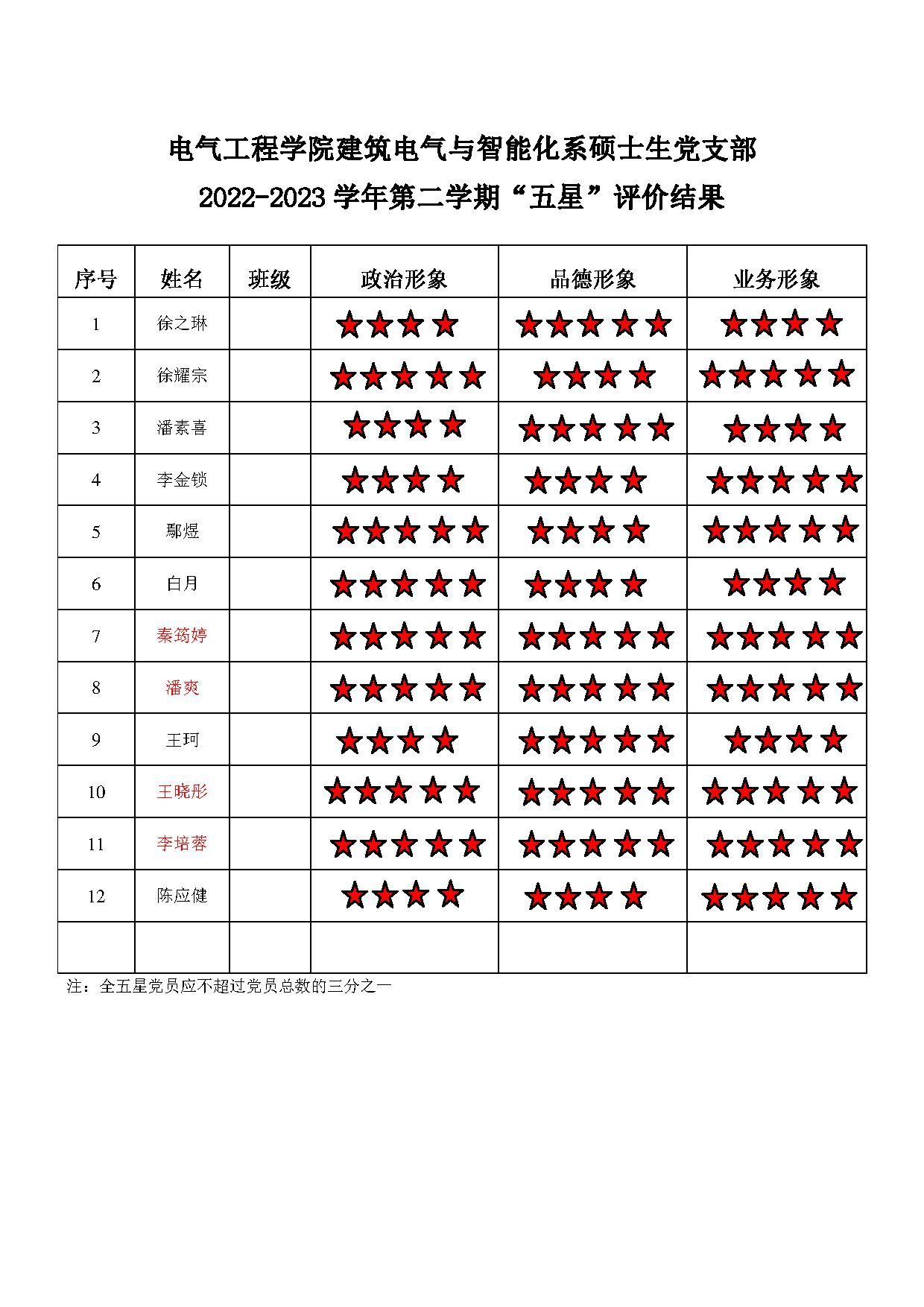 中文无码 建筑电气支部 2022-2023学年第二学期“五星”评价结果