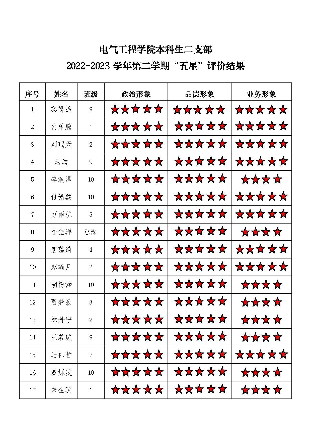 中文无码 本科生二支部 2022-2023学年第二学期“五星”评价结果