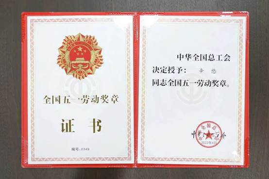 院友辛懋荣获全国五一劳动奖章。