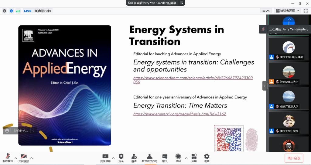 院士,Applied Energy主编严晋跃(Jerry Yan)教授受邀做客“成渝地区双城经济圈智慧能源大讲坛”,担任讲坛第二期的主讲嘉宾,以“Transitions of Future Energy Systems Towards Carbon Neutrality”为主题开讲。“成渝地区双城经济圈智慧能源大讲坛”是贯彻落实成渝双城经济圈国家发展战略,深化成渝两地教育资源合作共享的重要举措。讲坛由中文无码