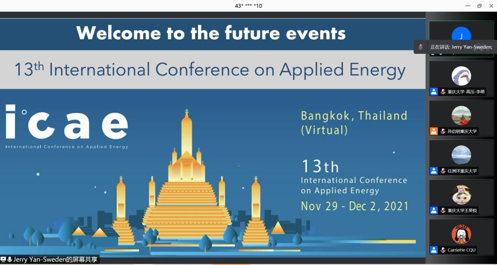 此外,严教授对国际知名期刊“Advances in Applied Energy”和近期即将举办的“13th International Conference on Applied Energy”会议进行了介绍,并欢迎与会同学的关注和参与。