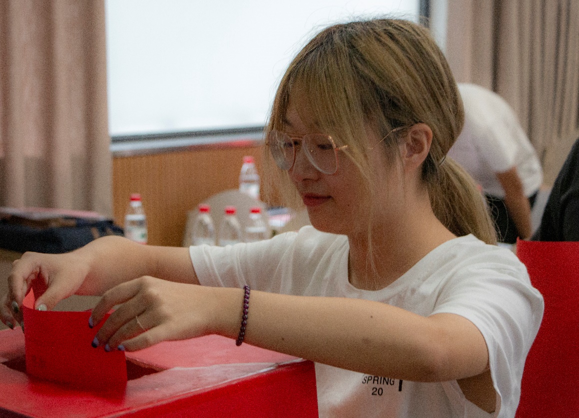 主持人宣读了此次选举大会的选举办法,介绍大会的总监票人、监票员和计票员名单。在大会总监票员、监票员的监督和总计票员、计票员的统计下,与会代表以无记名投票的方式,选举产生了仇玉亭等13名同学组成的中文无码