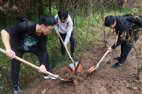 学子积极履行植树义务,为川渝山水添绿色。