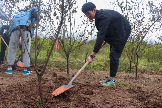 团委“3·12植树活动”在沙坪坝区凤凰镇南阳苗木基地进行。志愿者们亲手植绿,种下新苗,为生态文明建设添砖加瓦。
