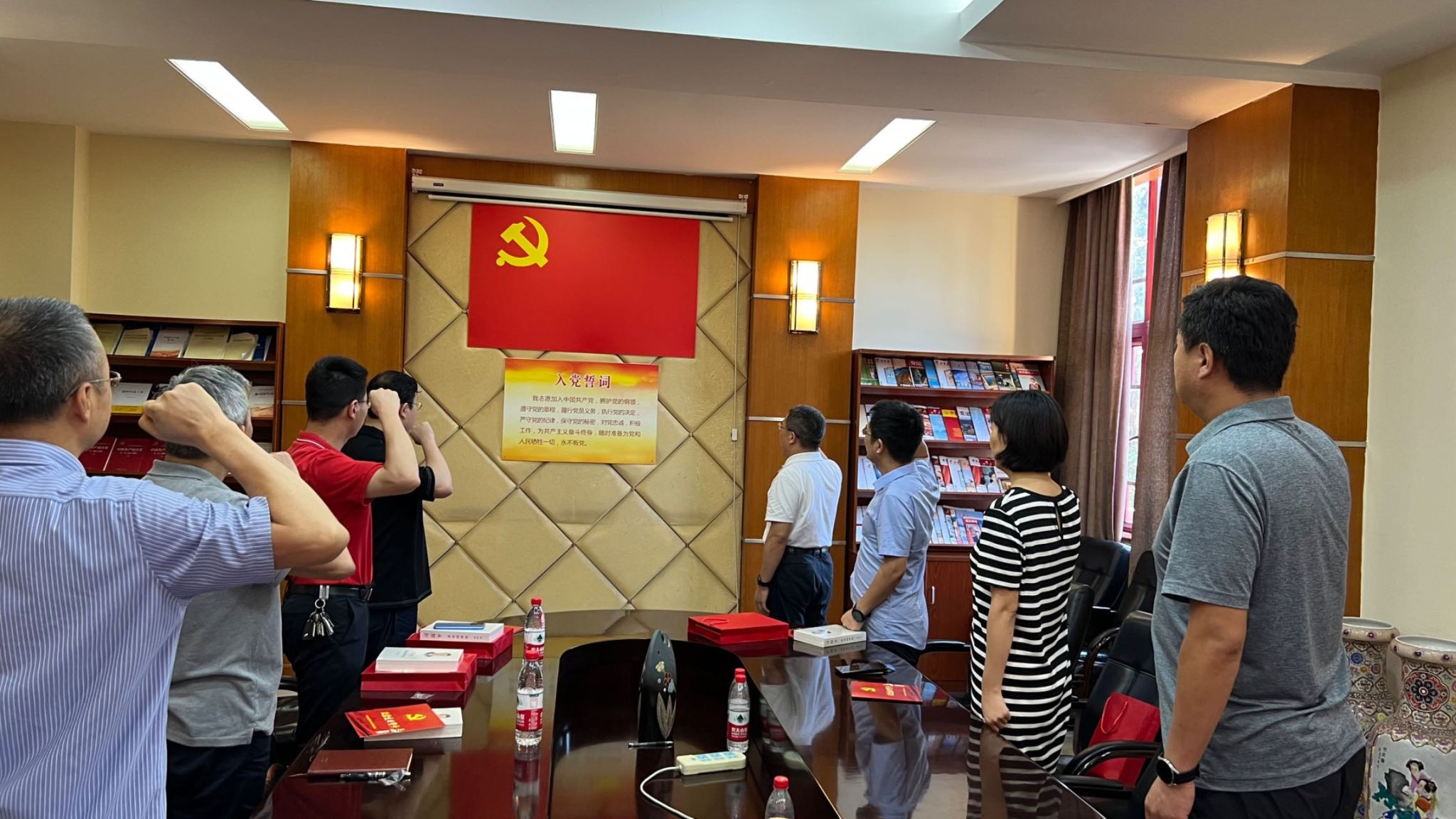 活动在雄壮的国歌声中拉开序幕,吴嘉宣读2023年“政治生日”党员名单,胡建林为过“政治生日”的党员同志颁发“政治生日”贺卡和礼物。随后,全体党员同志在胡建林的带领下重温入党誓词。