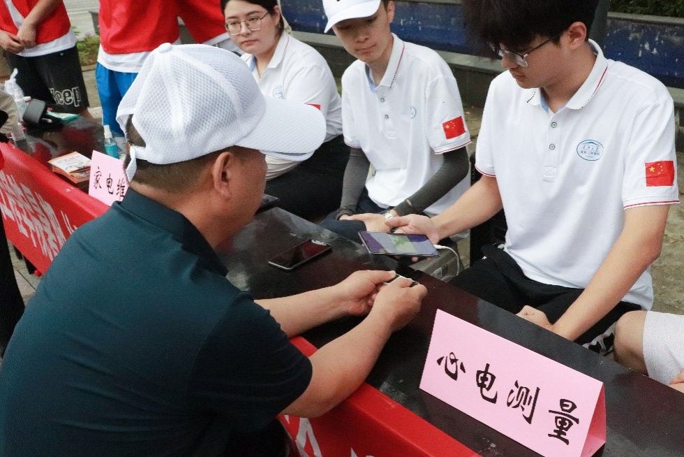 活动正式开始之前,实践队员与当地街道办沟通交流,并针对当地基层医疗情况开展实地调研。面向不同年龄阶段群体中频发的一些健康问题和生活问题,实践队成员们在志愿服务台中设置血压、血糖测量以及心电图检测三个服务点并围绕居民身体健康问题进行广泛宣传。