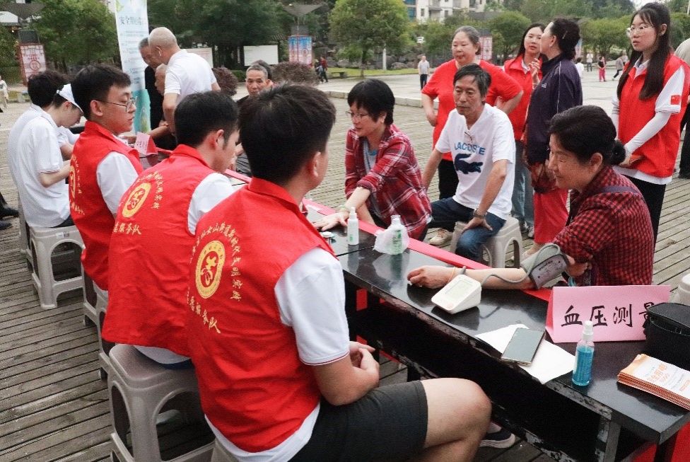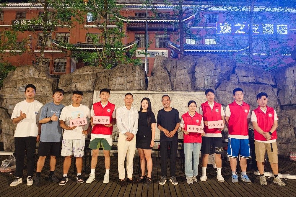 “振兴美丽乡村,‘电’亮科创武隆”实践队来到重庆市武隆区仙女广场,以“科技赋能助力公益”为主题,面向当地社区居民开展了爱心公益测量服务,助力基层医疗体系建设。