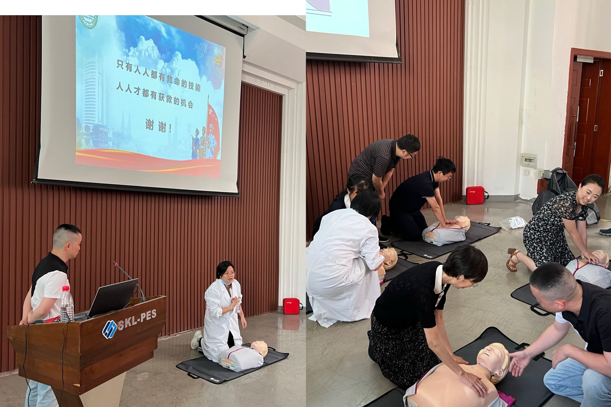 师生开展了“成人心肺复苏”为主题的应急救护医疗讲座,得到了在场师生的热烈反响并积极踊跃参加实操培训。