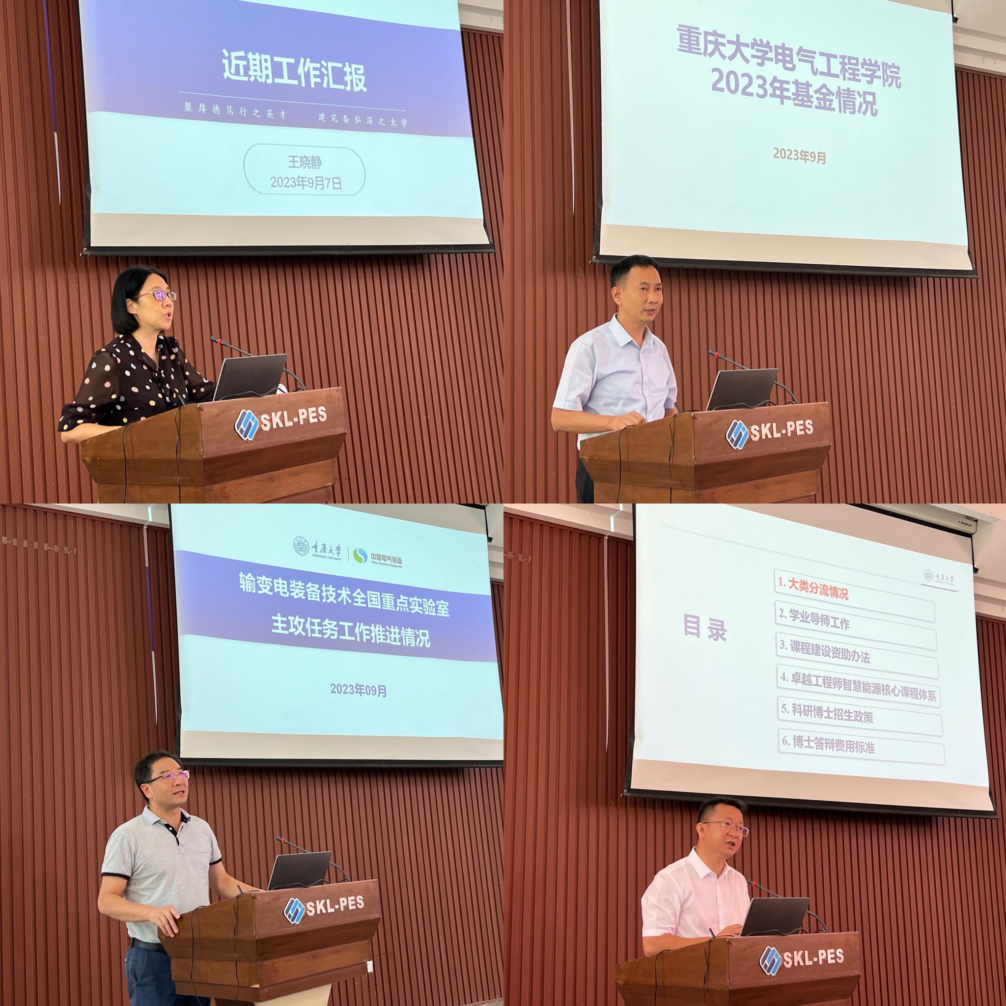 2023年基金获批情况及新一轮基金申报工作安排;张淮清从大类分流、学业导师、优质课程资助、智慧能源核心课程体系建设和博士招生答辩管理等方面介绍了人才培养工作近期开展情况;李辉汇报了输变电装备技术全国重点实验室主攻任务的推进情况;胡建林围绕实验室安全再次向全体教师强调了安全第一位的责任意识;同时,通过印发典型案例对全院教职员工开展了师德警示教育,引导全体教师以案为鉴,加强法治学习,提升规则意识,做到警钟长鸣。