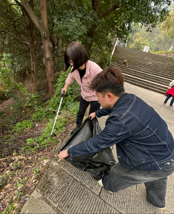 随后,办公室老师们集体前往歌乐山登山步道开展了“捡垃圾、助环保”志愿服务活动。党员同志拿着事先准备好的垃圾夹和手套,带头发扬不怕苦、不怕脏的优良传统,捡拾着景区内的垃圾,大到食品袋、饮料瓶,小到果皮、纸屑、烟头,景区里到处都是他们劳动的身影,胸前的党员徽章在阳光的照耀下,显得更加熠熠生辉。他们分工合作,将捡拾的垃圾集中投放到附近的垃圾桶里,为步道环境的有效改善贡献自己的微薄之力。
