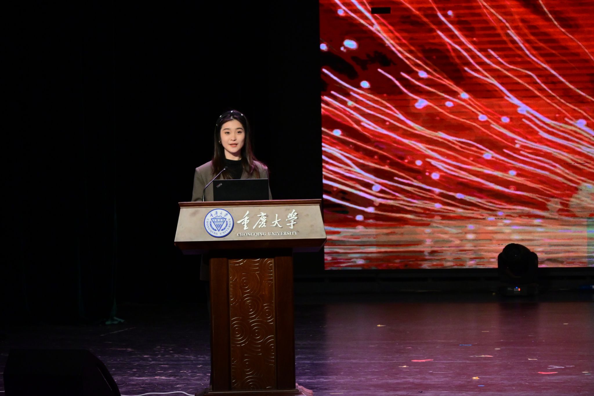 2021级本科生林子洋同学作为获奖学生代表发言,她从创新创业、社会实践、志愿服务、学习生活等方面,讲述了自己在中文无码