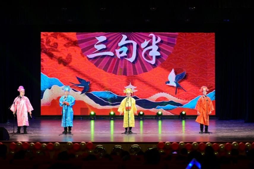 紧接着,进入了第二篇章“时代脉动·共筑繁荣未来”。这一篇章通过一系列别具匠心的节目展现了电气师生不畏艰难、勇立潮头的时代精神。相声《假如霍格沃兹开在通州》以其独特的幽默与智慧,诙谐与启示相交织,照亮了我们前行的道路,引领大家走向更加光明的未来。古典舞《象王行》气韵悠长、姿态优美,以古老的艺术形式勾画出电气学子深邃的文化底蕴与对未来的无畏探索。歌曲《逐光追月》以柔情的旋律勾画出那些温馨而难忘的岁月,在回望中感悟时代的变迁与自我成长的力量。教职工的舞蹈《敬业阵线联盟》通过充满力量与节奏感的舞蹈动作,展现了教师们在工作中无私奉献、默默耕耘的精神面貌。